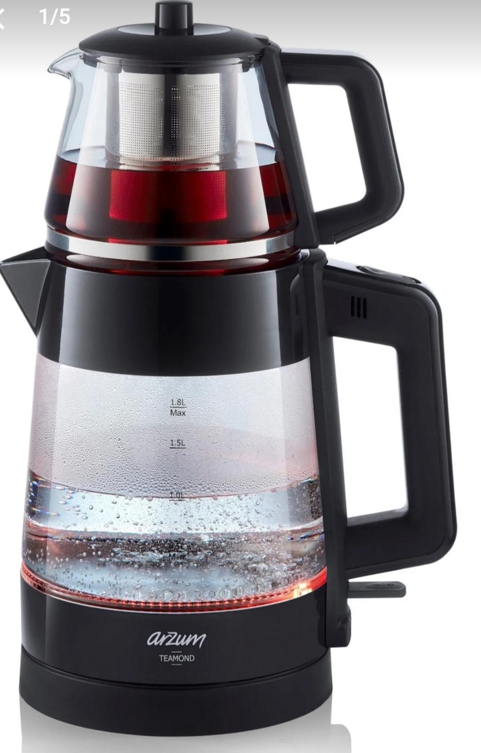 Ürün Özellikleri: Cam, Demlik Kapasitesi: 1.1 lt, Su Isıtıcı Kapasitesi: 1.8 lt, Sıcak Tutma, Çay Filtresi, Işıklı, Susuz Çalışma Emniyeti, Su Kaynama Emniyeti.