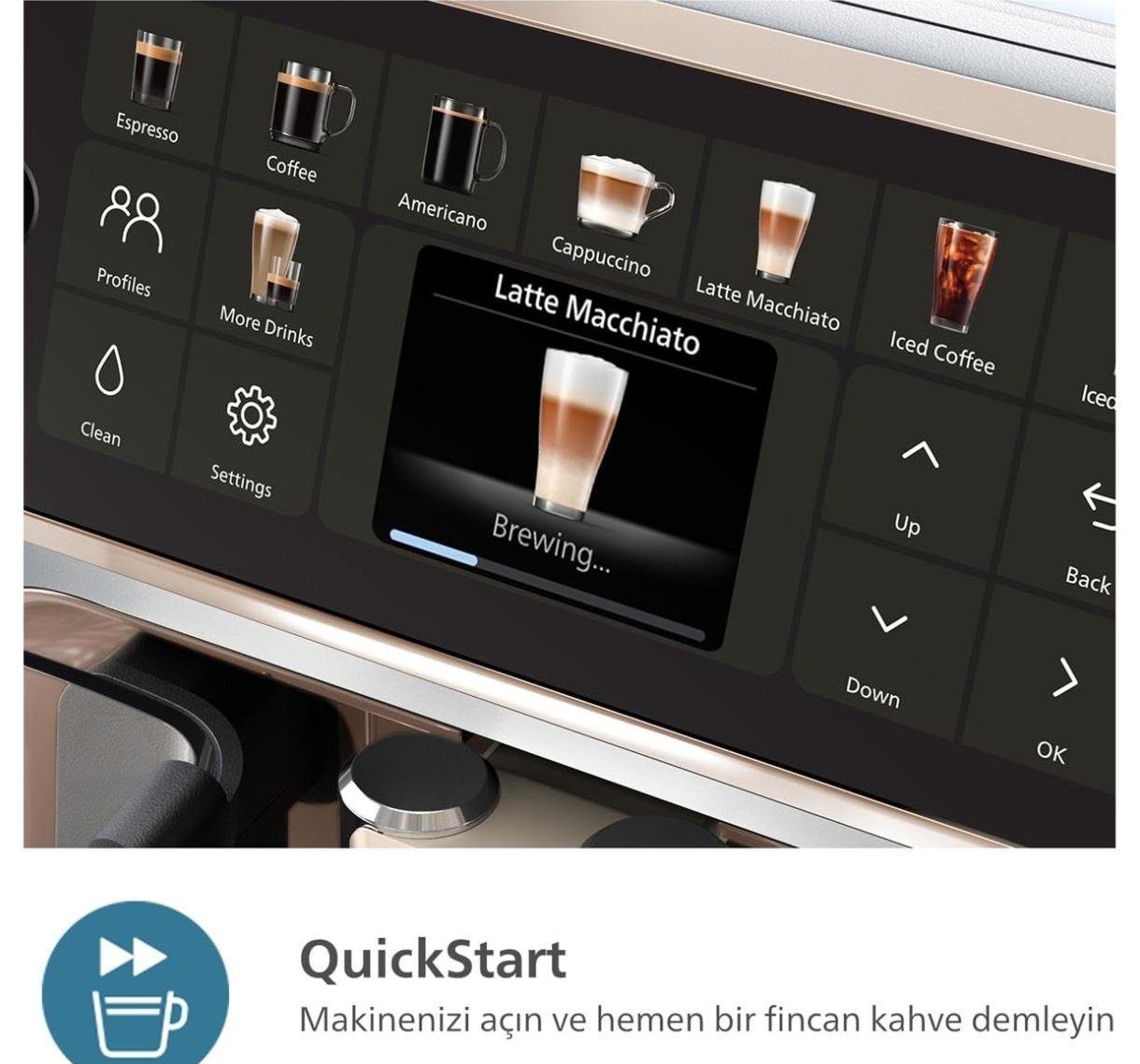 - QuickStart ile Anında Hazırlama: Makineyi hızlı bir şekilde çalıştırarak anında kahve demlemeye olanak sağlayan QuickStart fonksiyonu ile beklemeye son