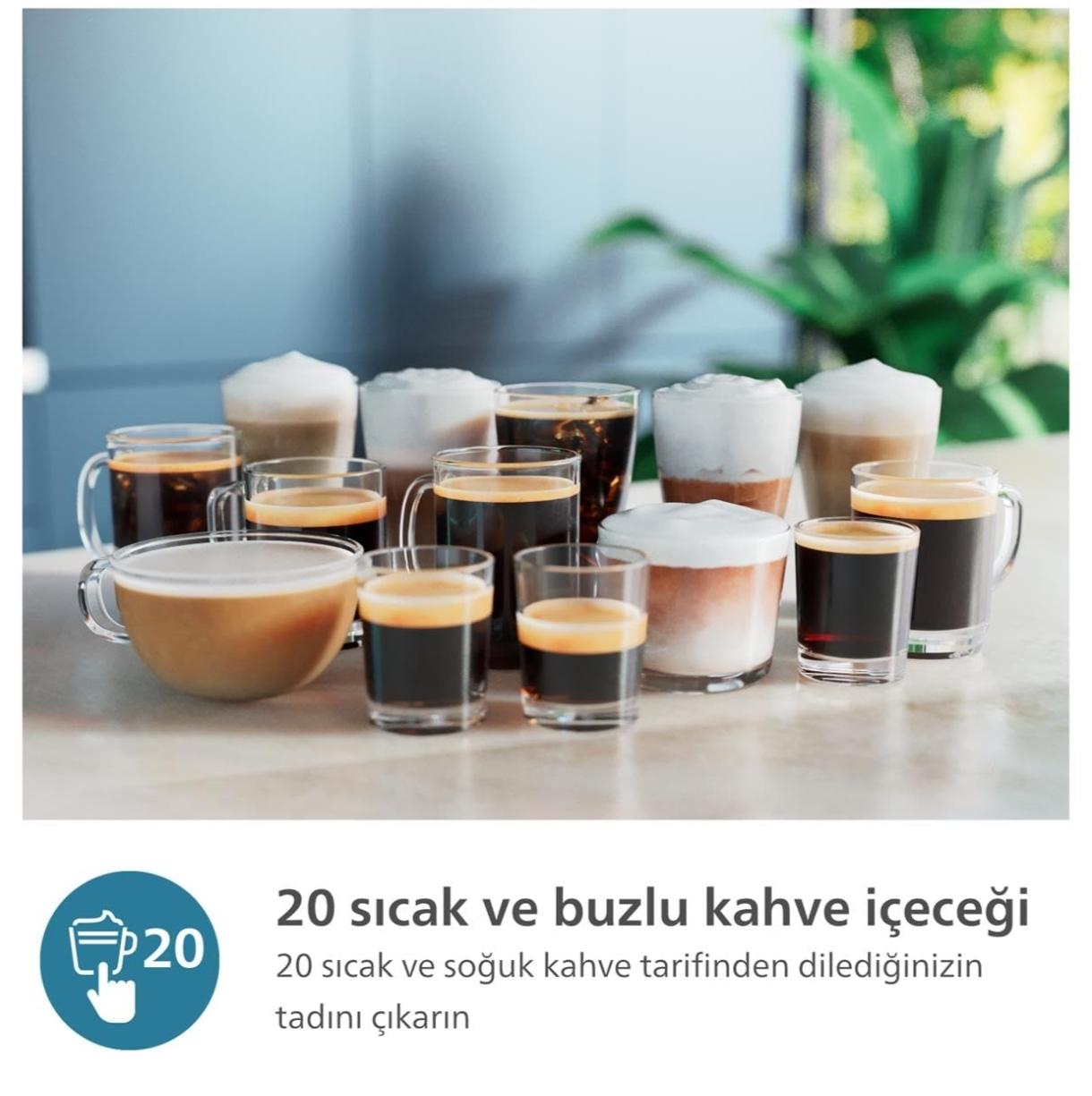 - İçecek Çeşitliliği: Sıcak espressolardan serinletici buzlu kahvelere kadar 20 farklı kahve tarifini keşfedin; tüm tarifler ister sıcak ister buzlu olsun tutarlı, lezzetli tatlar için ayarlanmıştır
